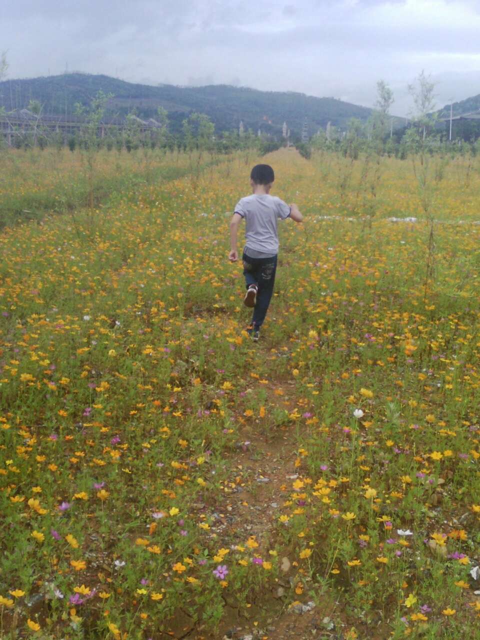 照片中的外甥穿行于花海,他小心翼翼地放下抬起的脚,生怕践踏了格桑花,童真的笑容与格桑花相映成趣,纯净的笑声回荡在花海的上空。看着天真无邪的外甥,我们仅希望他能快快乐乐地,长大后不要忘了曾经的格桑花,还有萦绕在花海上空的笑声。