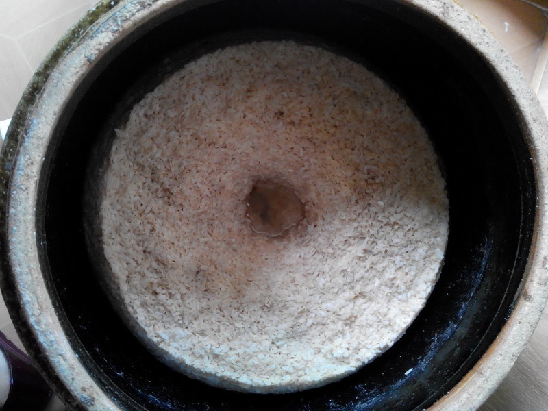 不然,我唯独喜爱妈妈酿的糯米酒,非常甜,却不腻味,每次喝上一口都是满满的幸福感。上个月,妈妈又酿了一缸糯米酒,过程并不复杂,酿酒前要预先准备一个陶瓦酒缸,一个木桶,一个大水盆,10斤糯米,一个酒饼。首先,瓦缸、木桶、大水盆要清洗得非常干净,晾干,然后把洗过泡发的糯米倒入木桶,大火蒸熟,然后把糯米倒入大水盆中晾一会。接着,把酒饼用凉开水化开,再慢慢倒入糯米中,搅匀。此时,便可以把糯米倒入瓦缸中,在中间挖一个孔,并在周边用筷子插几个洞,闭封缸口,同时用毛被包裹瓦缸,第二天便能闻到酒香,三天后便可食用。