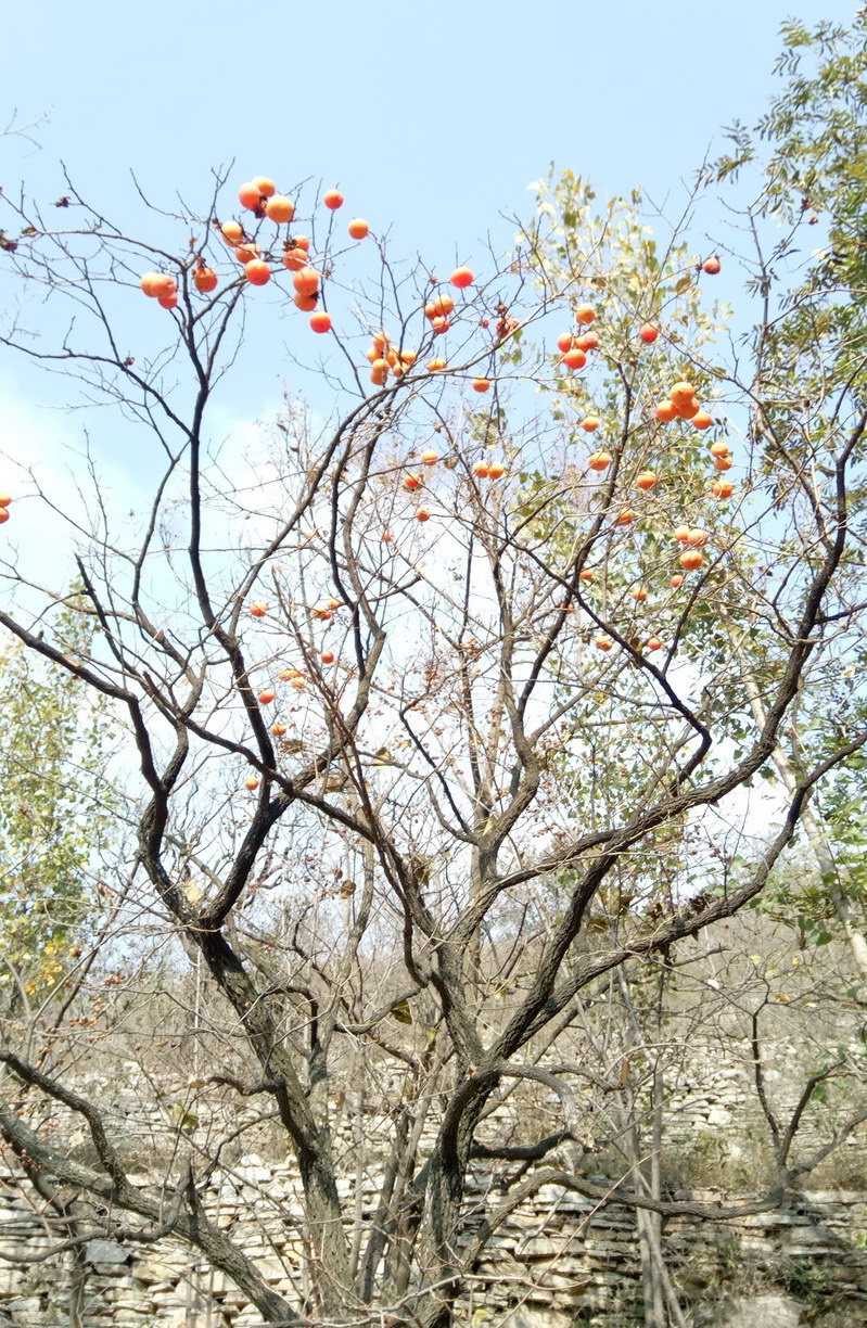 这几天的工作皆是进山测量数据,一路上看到的行人皆是老人,年轻人都出外打工了,唯有老人小孩留守。镇上有一独特的景色,便是家家户门前门后种有两三棵柿子树,树上叶子已掉落,枝头挂满了柿子,红得那样迷人,远远看去,苑若一团团火焰,更象征着红红火火的日子。