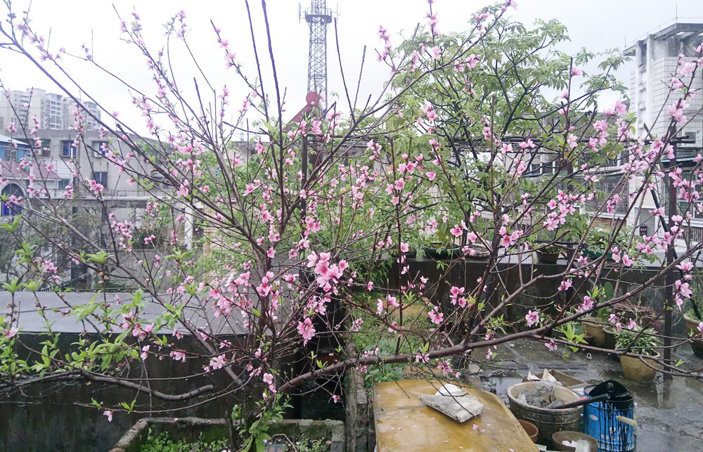转过身去,那棵曾以为即将老死的桃树奇迹般地焕发着生机,正肆无忌惮地绽放着艳丽夺目的桃花。粉红色的花错落有致地缀满了枝头,花瓣迎着拂过的轻风晃动起来,宛若一只一只翩跹飞舞的彩蝶,惹人怜爱。枯褐色的枝杆上抽出了些许绿色的叶子,恰到好处地映衬着满树的红,裹着新装的桃树褪去颓败的旧服,尽情地舒展着。
