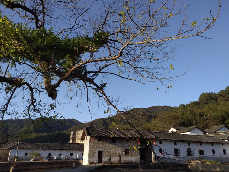 寂静的小村庄,四面环山。青砖黛瓦、朱漆窗格的老屋弥漫在淡雅的桂花香气之中,山涧汇聚,于青石板下潺潺作响,树叶凋零,忽见鸟巢曝露于老树枝丫间,摇摇欲坠。夕阳洒落余晖,映亮山林,氤氲了一层静谧的色彩。忙着收花生的老人在谷坪上扬着农具,声响划破了这份宁静,似曾想识的时空,掀开了那尘封心底的睽违已久的岁月。